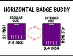 This item is 3.1 inches long and 3.4 inches wide. Badge buddies are light weight and weigh about 0.6 oz it. Badge buddies add the perfect touch to your badge ID holder!