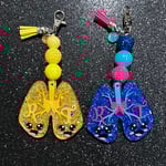 This item is 3 inches, with a tassel and a glitter charm. We now offer the option to add beads (3-20") to your keychain!