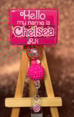 This item is 2 inches, & can be adhered to a badge reel permanently or removable with Velcro. We now offer the option to add beads (2- 14 or 16") to your badge reel!